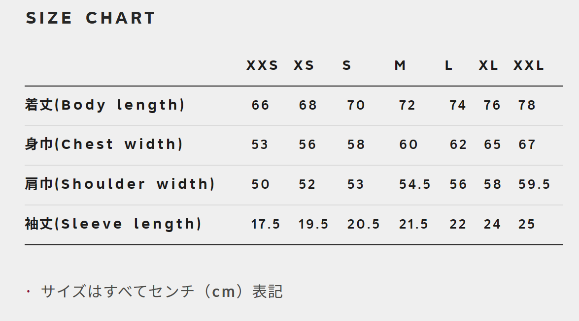 (詳しくはサイズ表をご確認くださいませ)